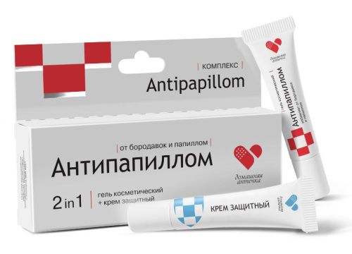 - Антипапиллом «Две линии». Гель для удаления папиллом. Препарат проникает в глубокие слои кожи и способствует разрушению пораженных капилляр (питающих новообразование). Эффективен в комбинации с другими наружными средствами.